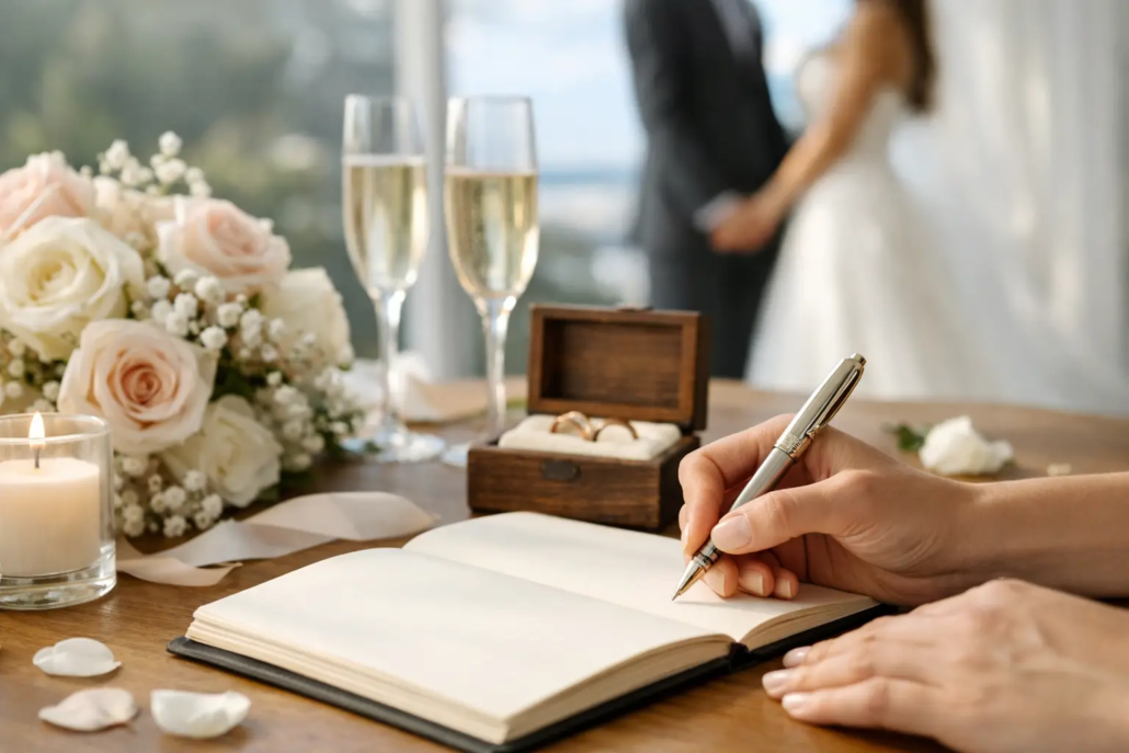 A brief personalized wedding ceremony script can still feel heartfelt, clear, and memorable. In fact, shorter ceremonies often work especially well for elopements, courthouse-style signings, weekday weddings, and small gatherings where the couple wants the moment to feel intimate without a lot of formal structure.